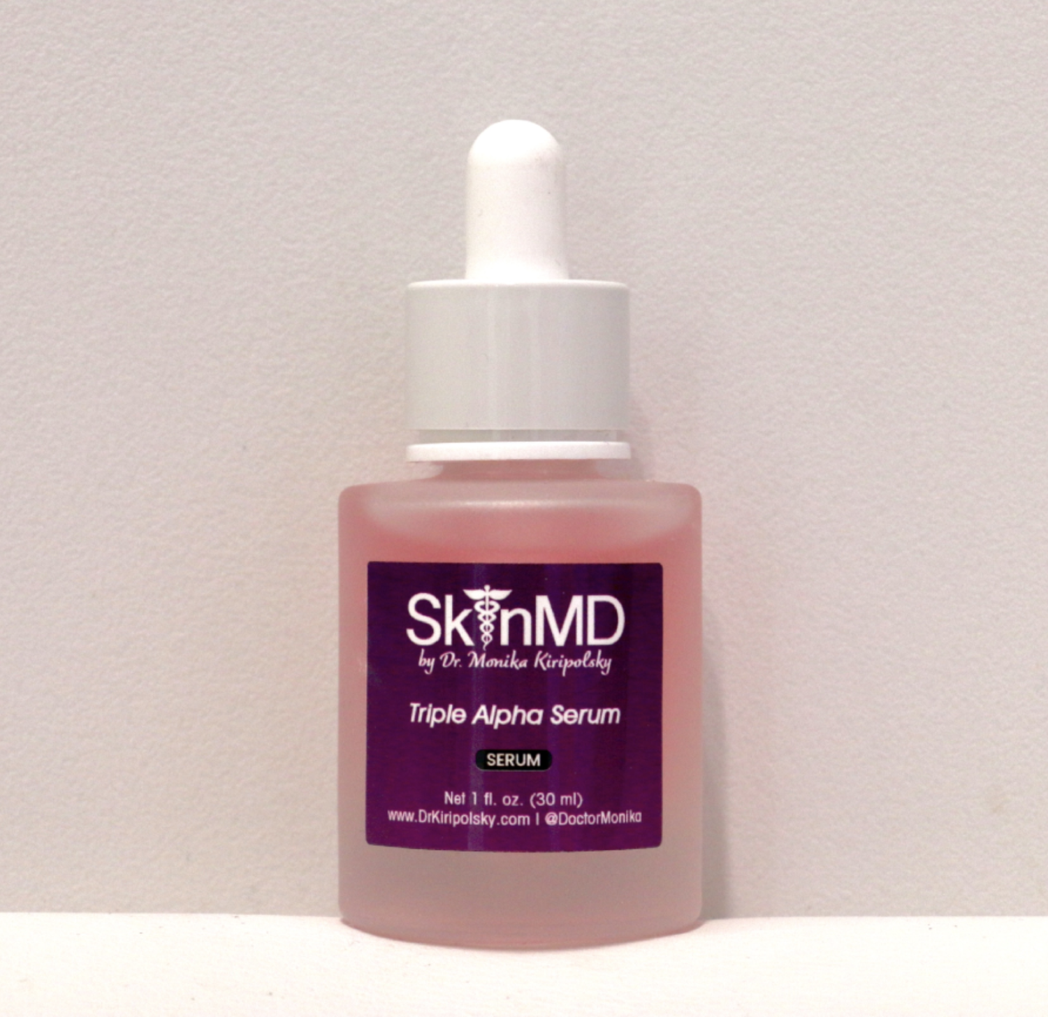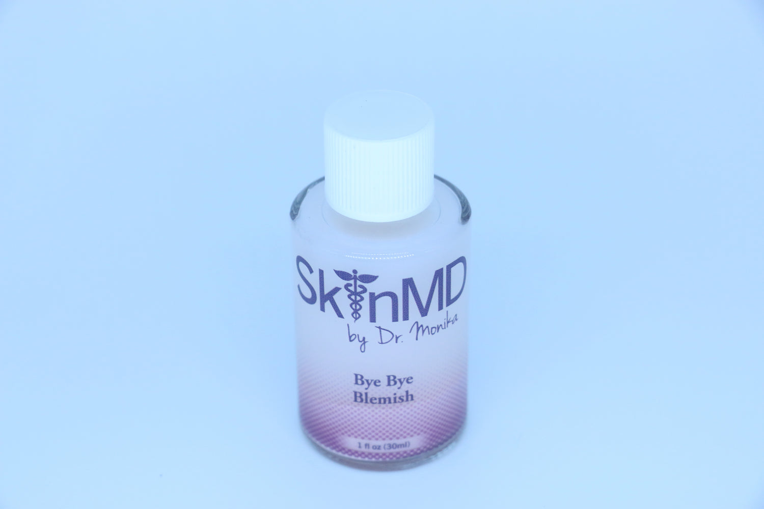 • Tube of SkinMD Body Acne Cleanser on a bathroom counter with flowers and towels in the background.